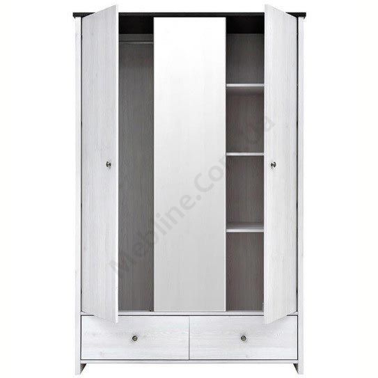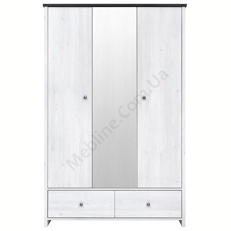 Трьохдверна платтяна шафа з висувними шухлядами та дзеркалом.