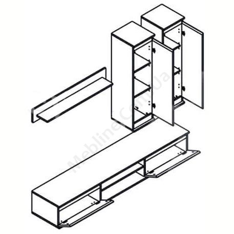 - Тумба під телевізор з двома відкидними дверцятами та відкритими поличками.