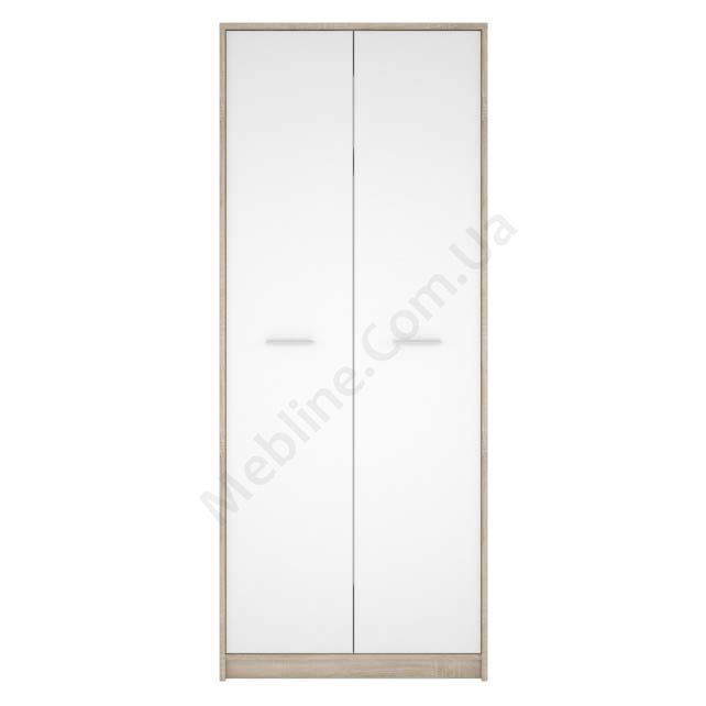 Дводверна шафа зі штангою для одягу та полицями всередині.