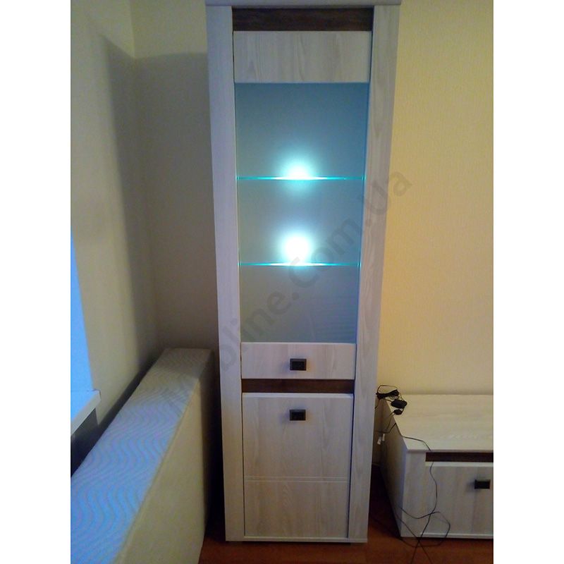 Вітрина з дверцятами зі скляною вставкою та підсвічуванням.