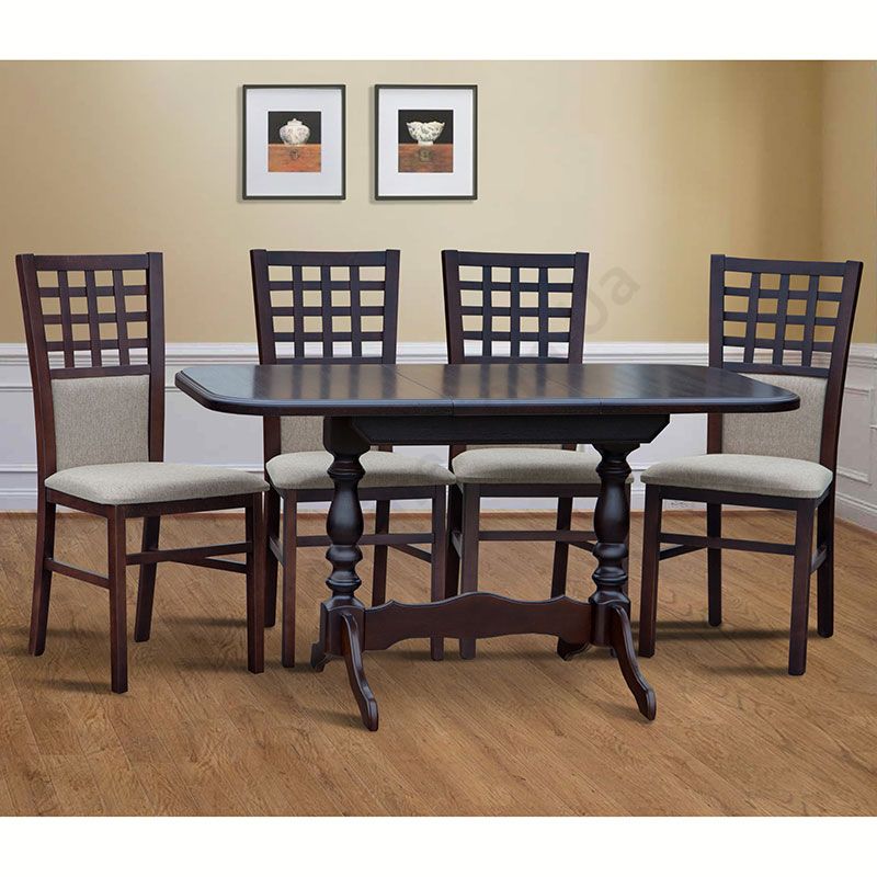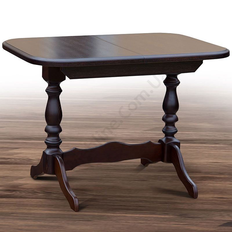 Розкладний обідній стіл на фігурних ніжках із натурального дерева.