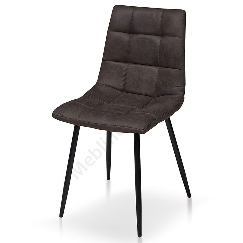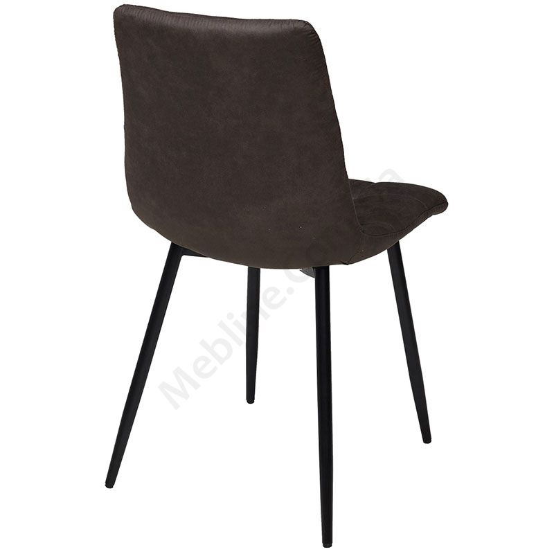 М’який стілець без підлокітників на металевих ніжках із тканинною оббивкою графітового кольору.