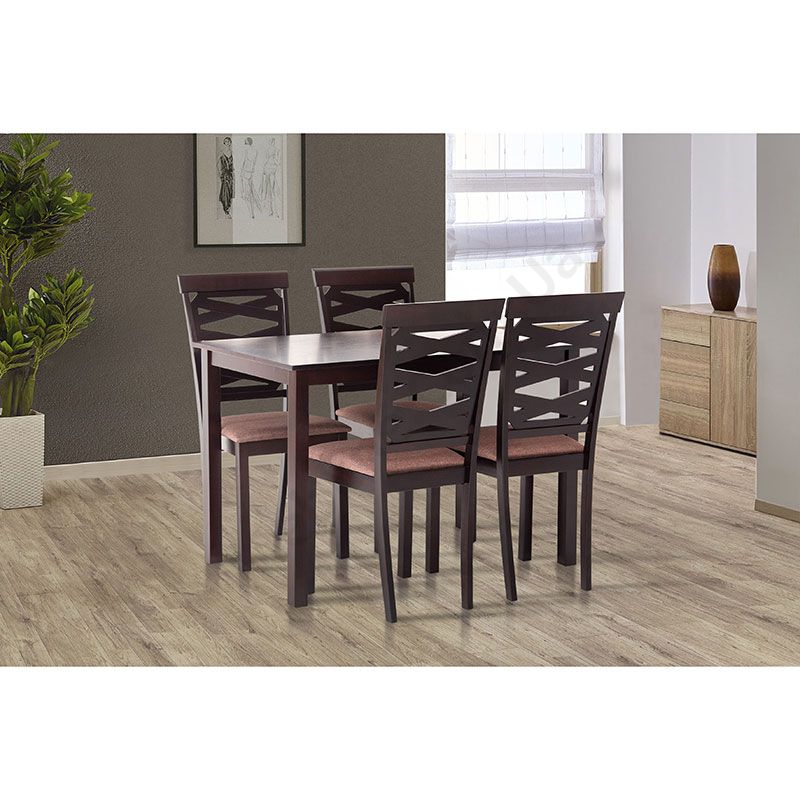 Кухонний дерев’яний комплект зі столу та чотирьох стільців.