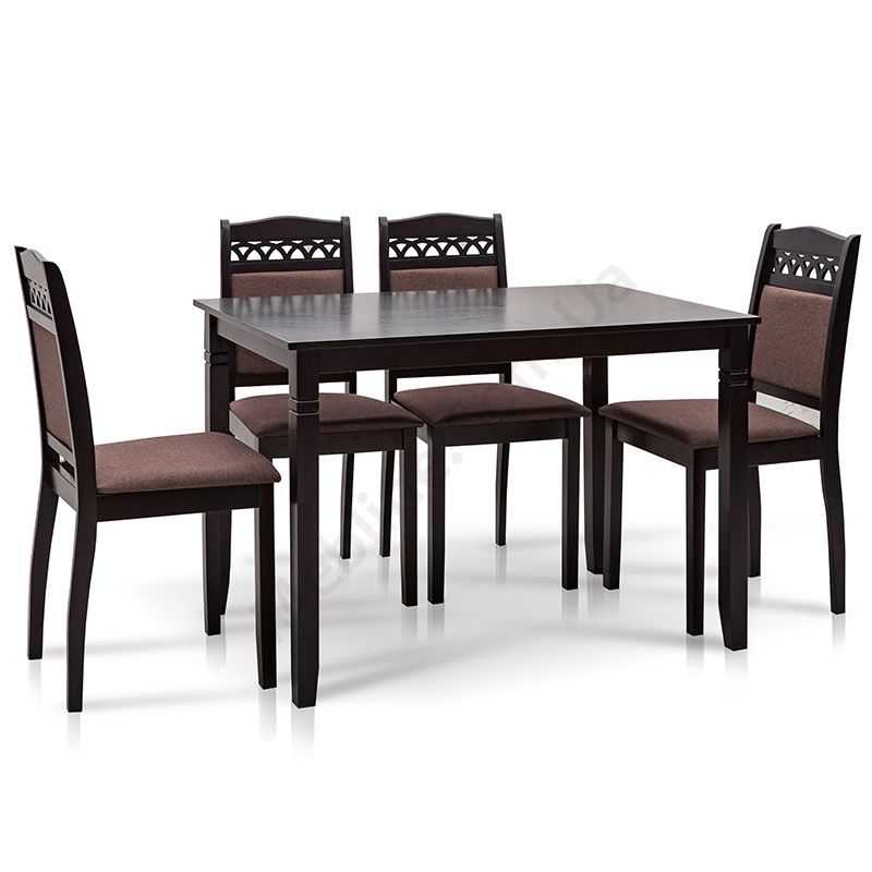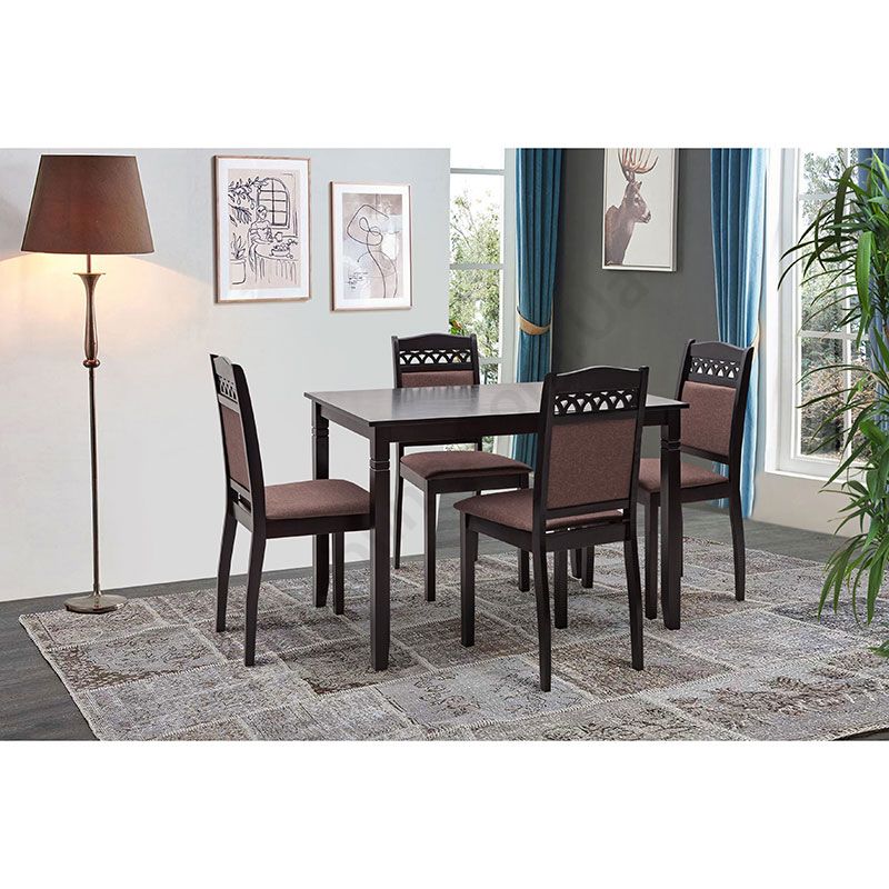Кухонний дерев’яний комплект зі столу та чотирьох стільців.