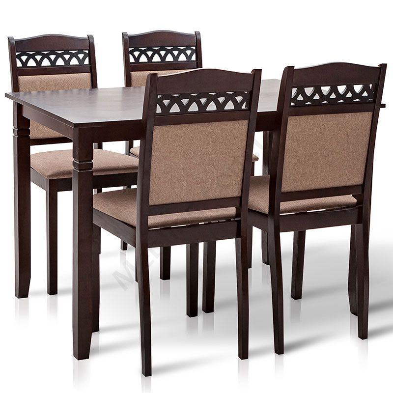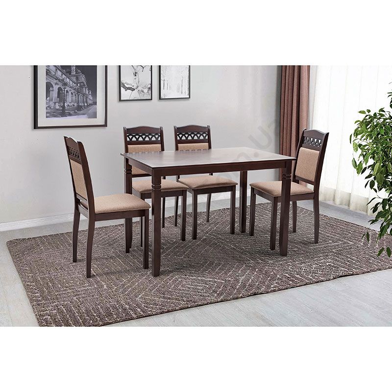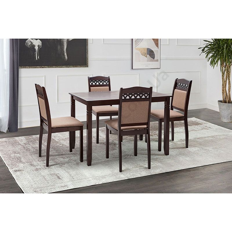 Кухонний дерев’яний комплект зі столу та чотирьох стільців.