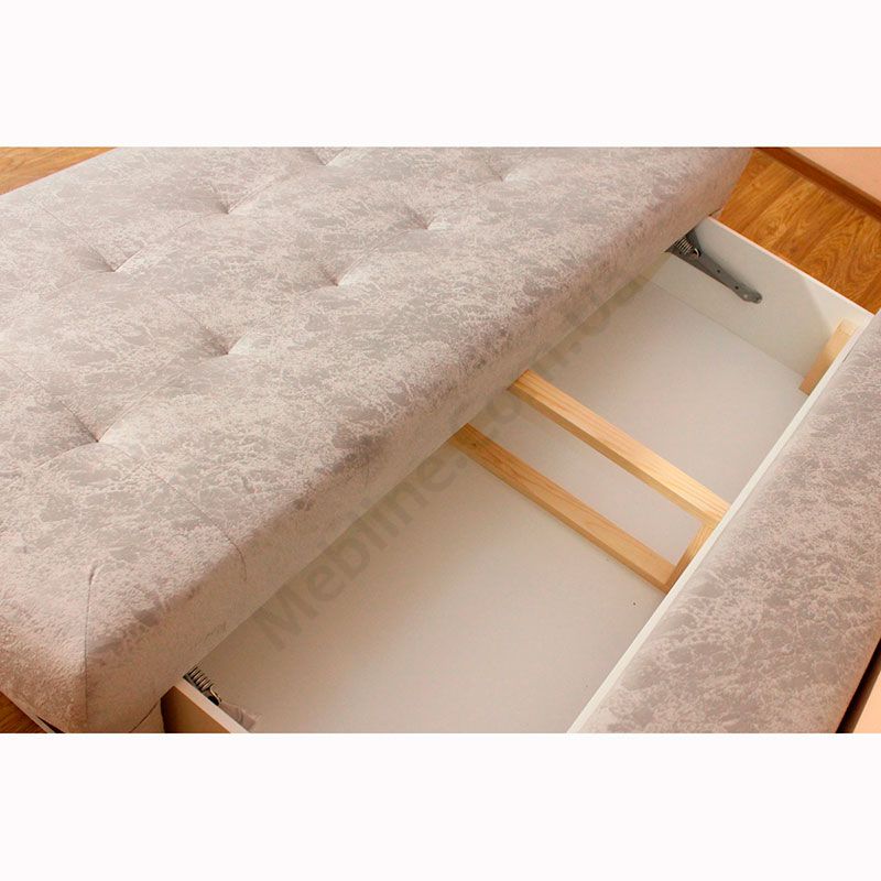 • Відсутність підлокітників візуально робить диван легким та компактним