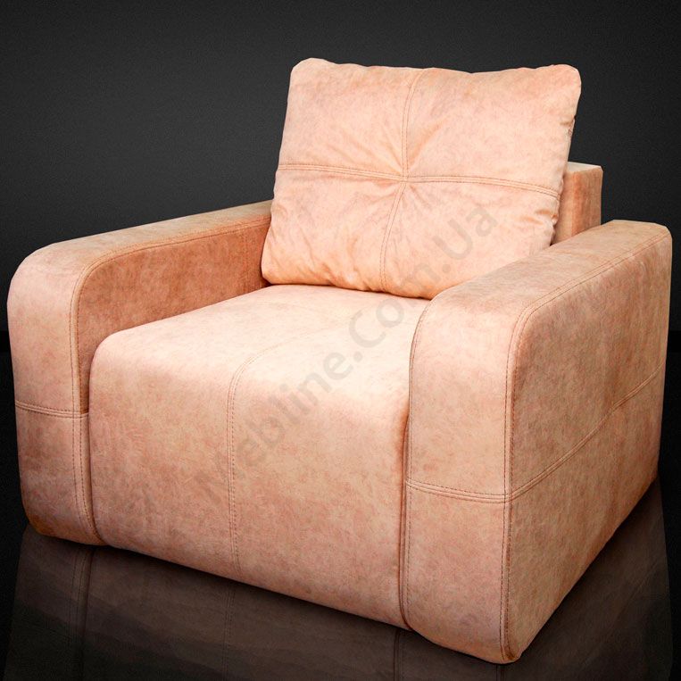 Нерозкладне крісло з широкими підлокітниками та подушкою.