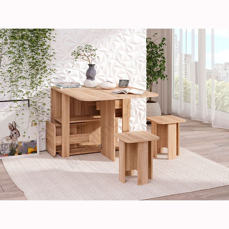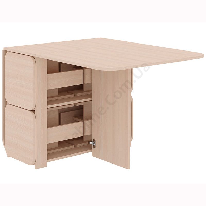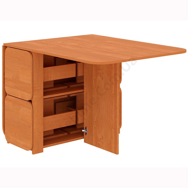 Розкладний стіл-книжка з дверцятами та шухлядами.