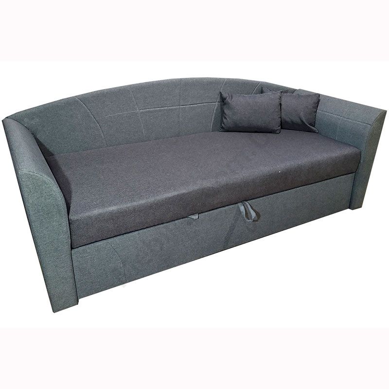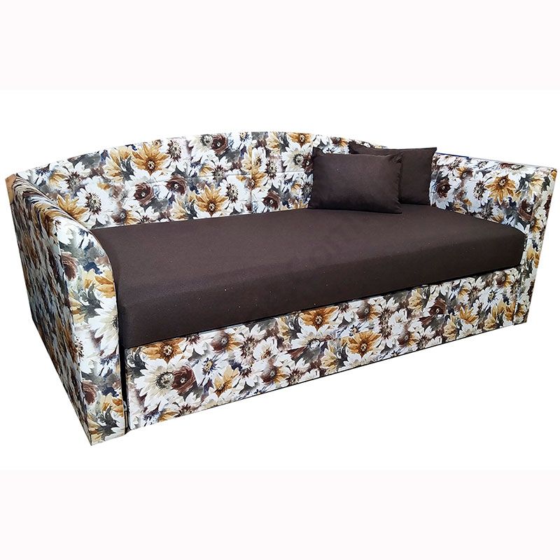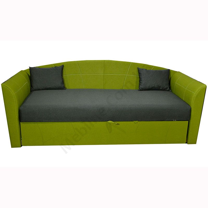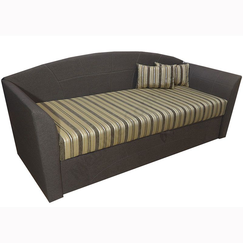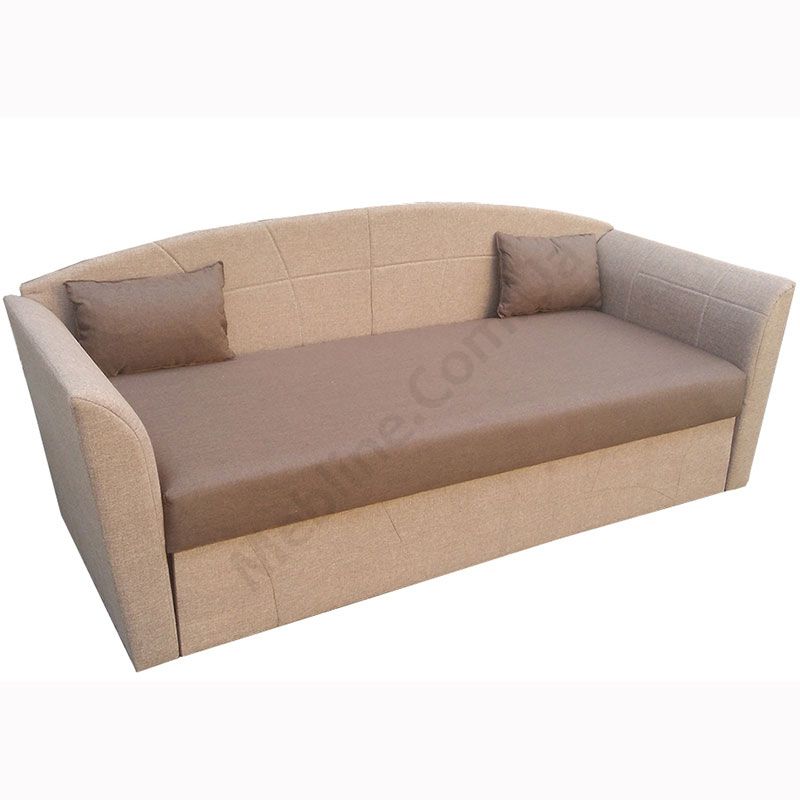 Розкладна тахта з підлокітниками та маленькими подушками.
