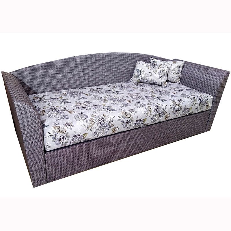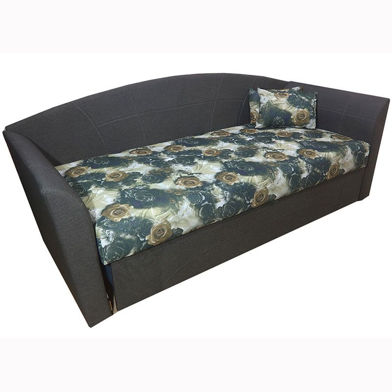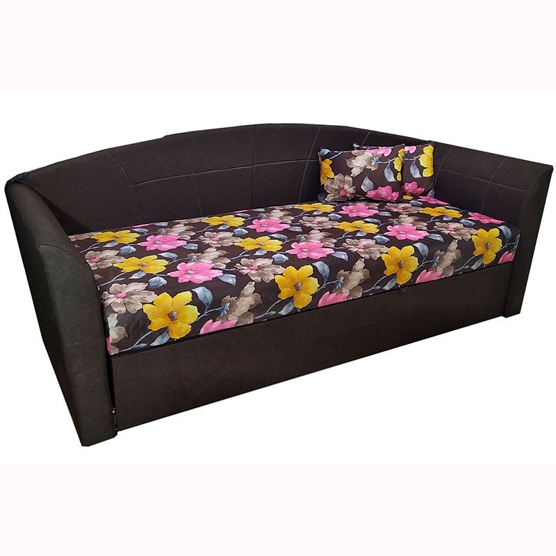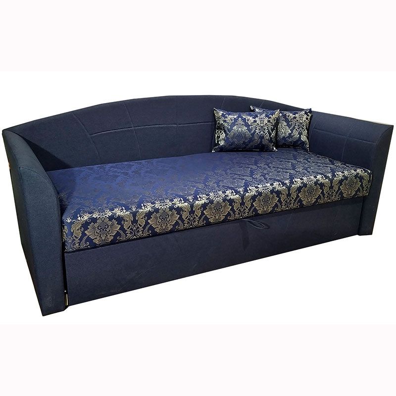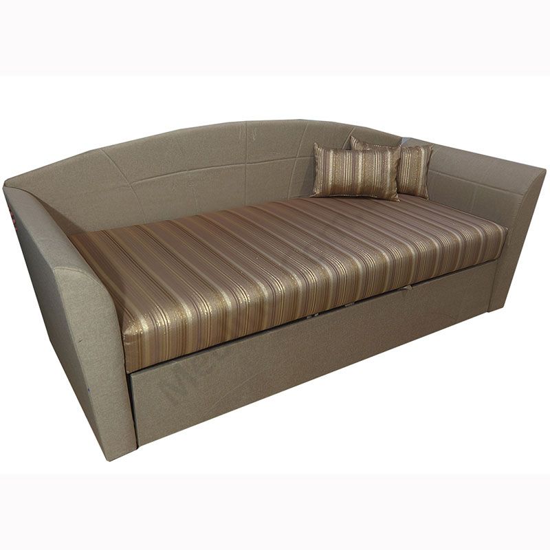 Розкладна тахта з підлокітниками та маленькими подушками.