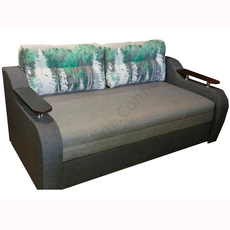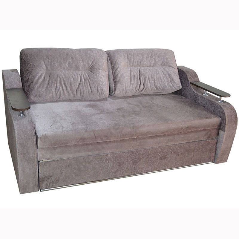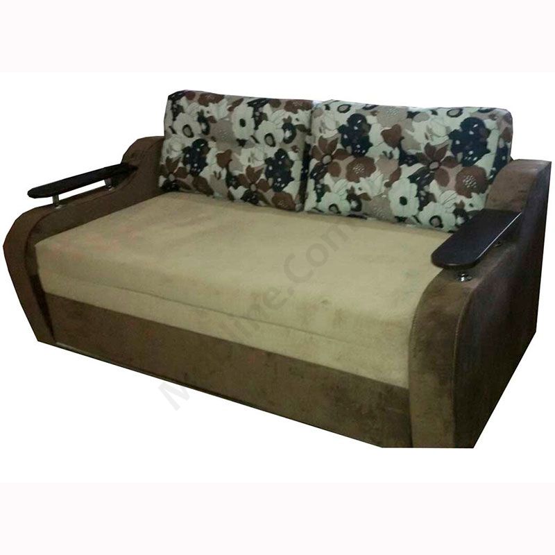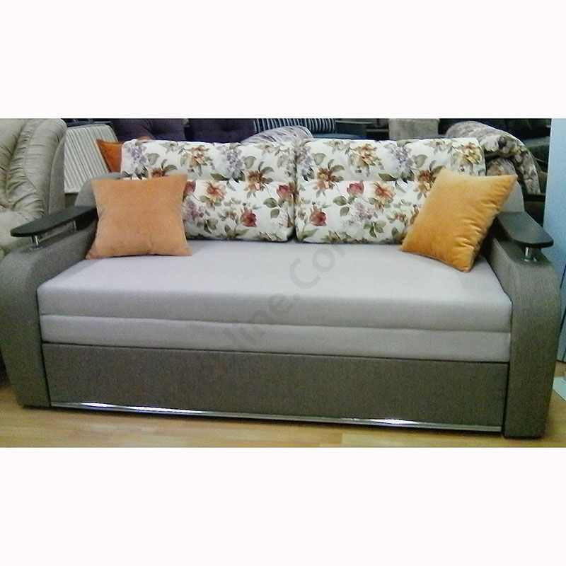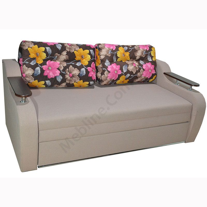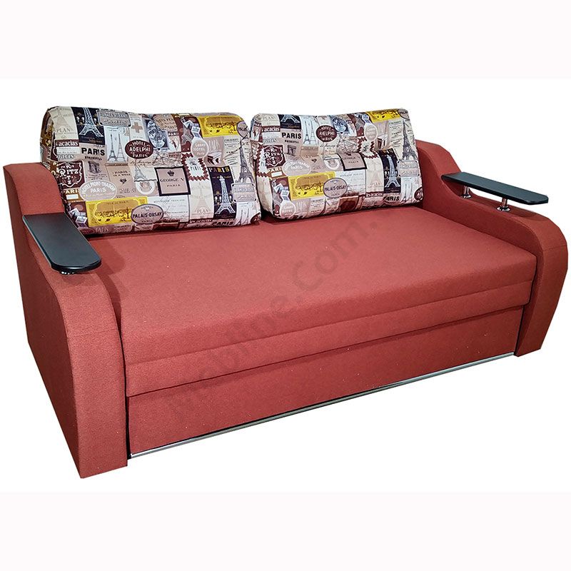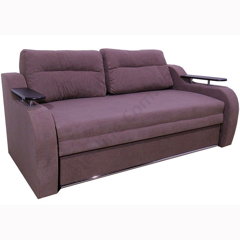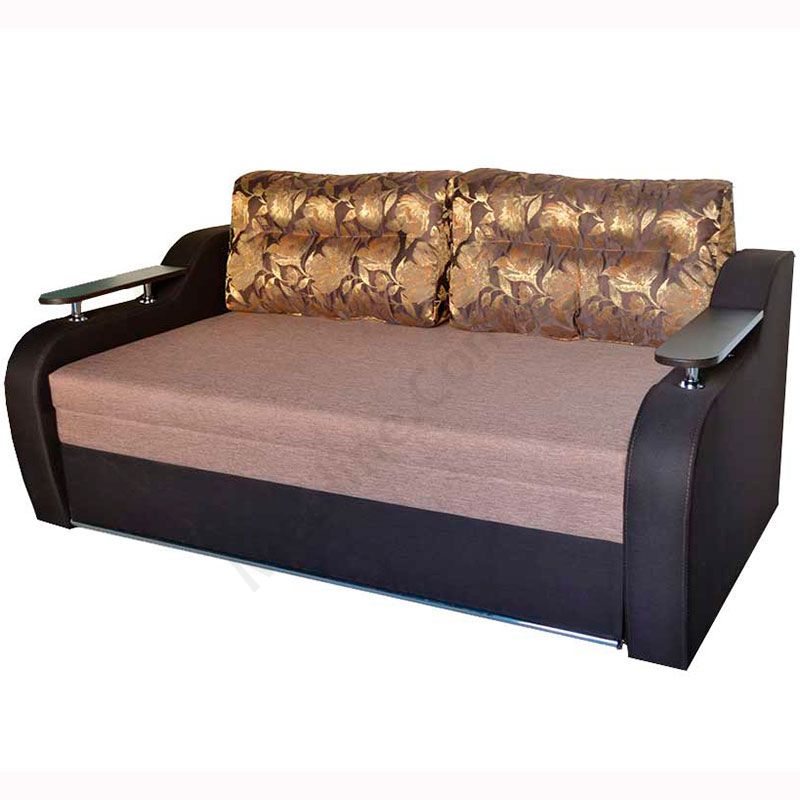 Прямий розкладний диван з підлокітниками та м’якими подушками.