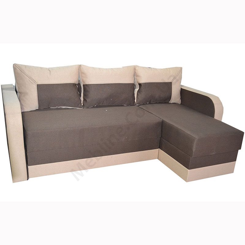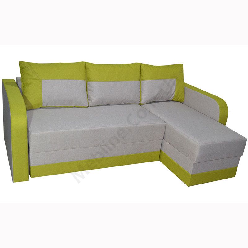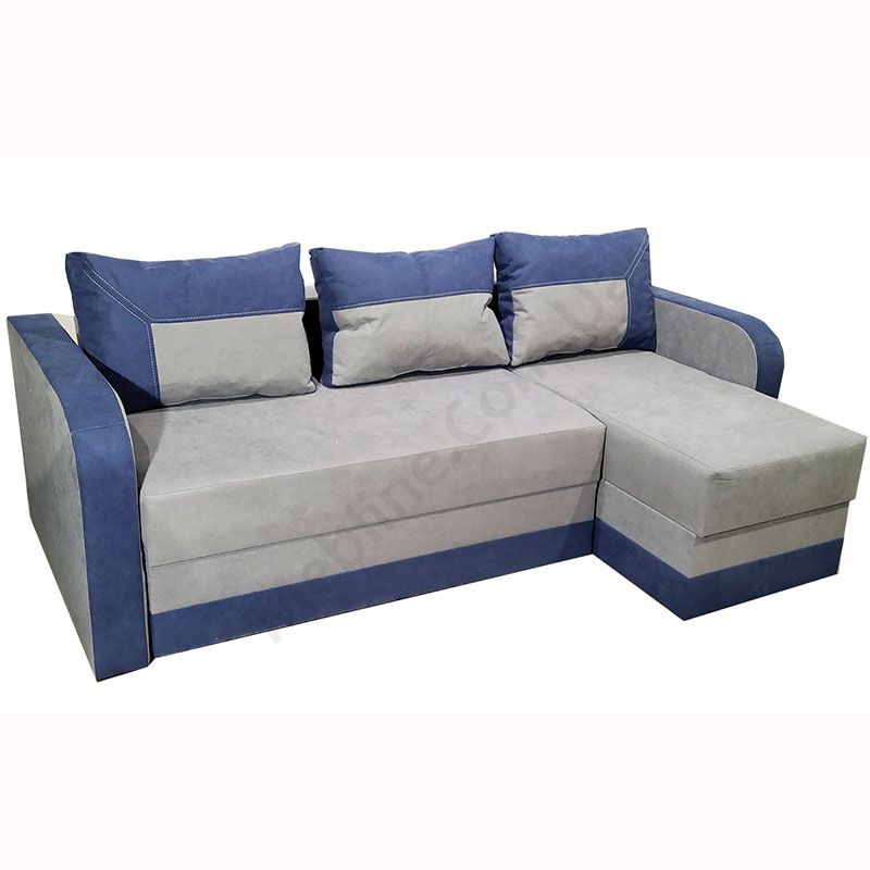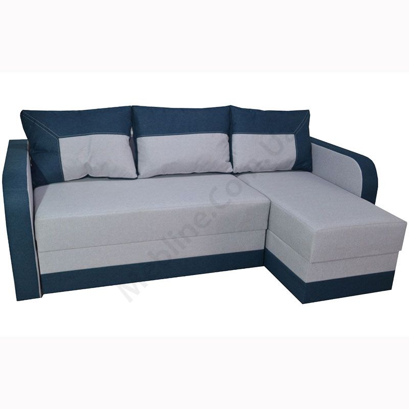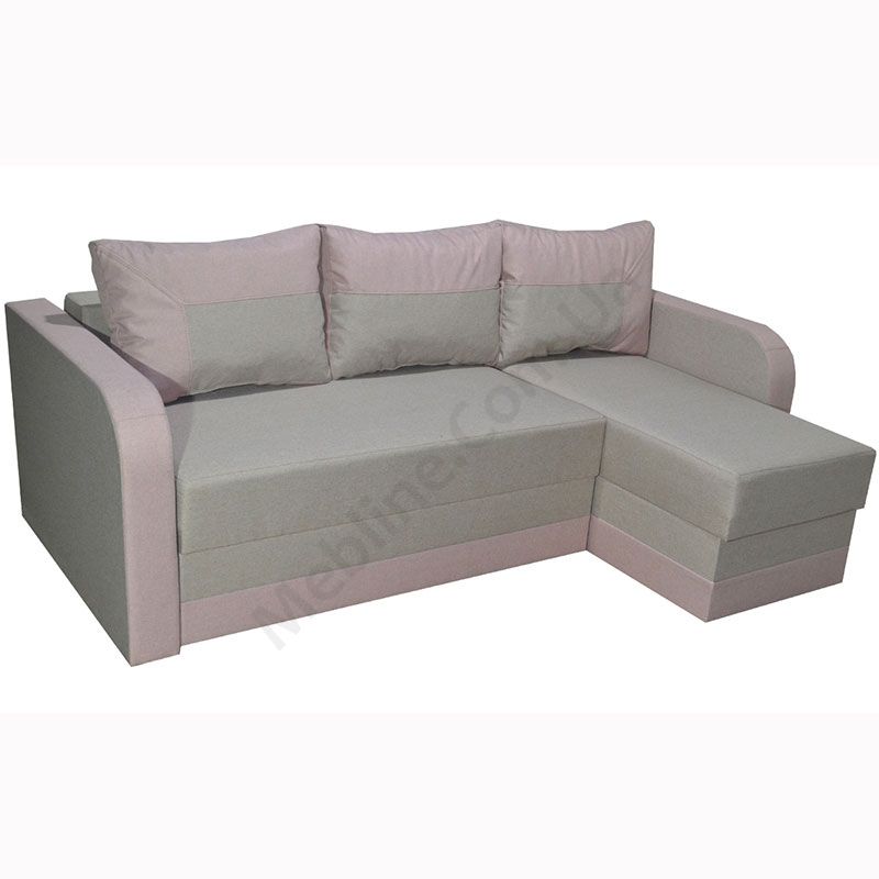 Кутовий розкладний диван з підлокітниками та м’якими подушками.
