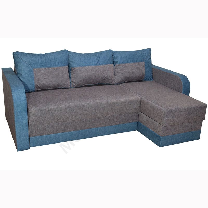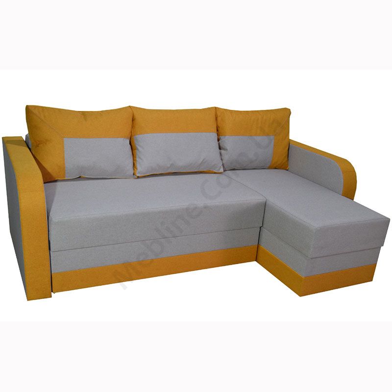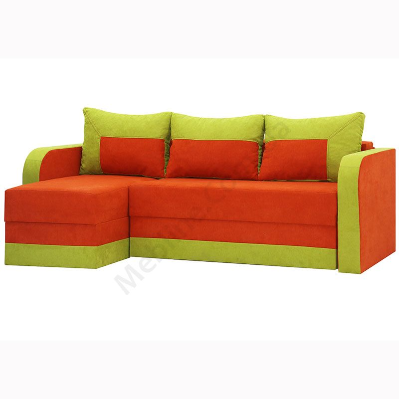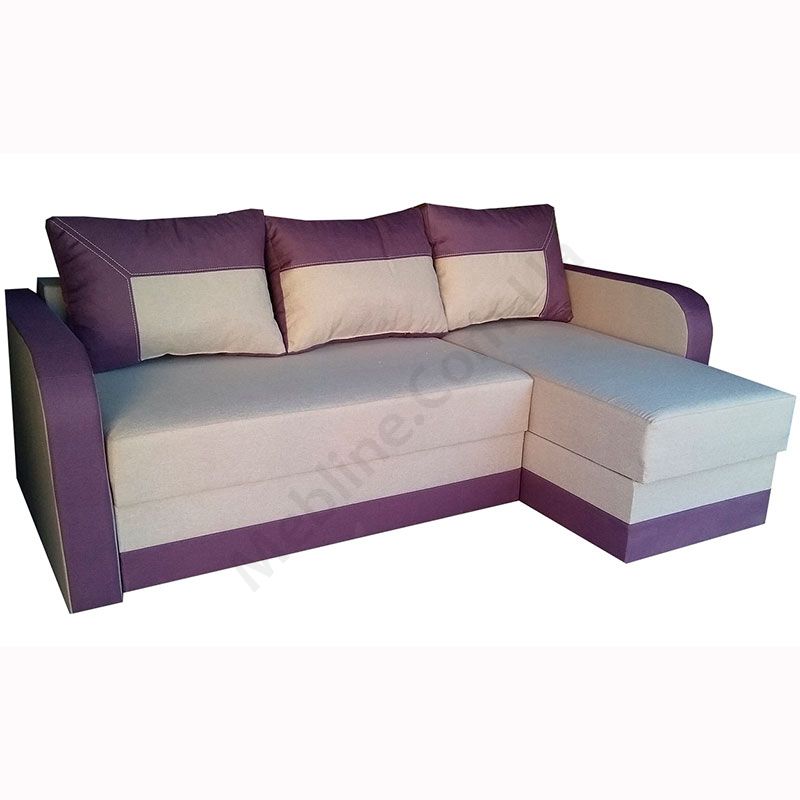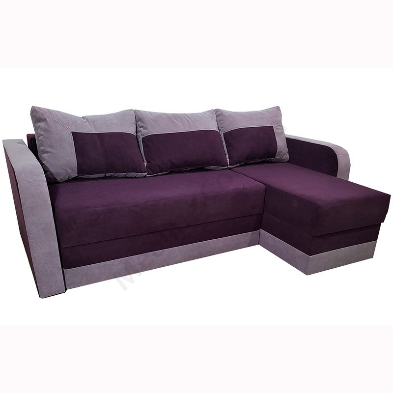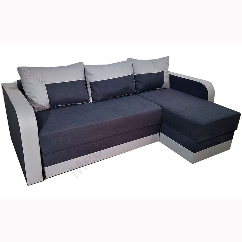 Кутовий розкладний диван з підлокітниками та м’якими подушками.