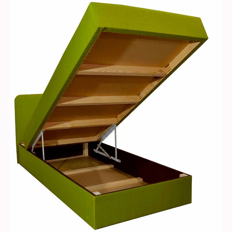 Під’ємне односпальне ліжко з м’якою оббивкою.