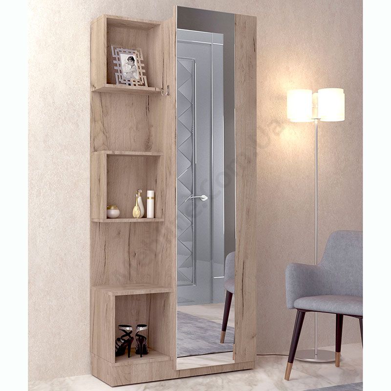 Передпокій з шафою, полицями та дзеркалом.