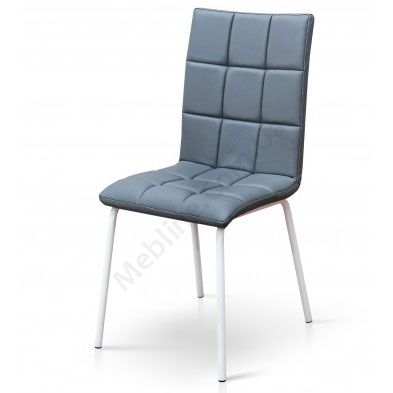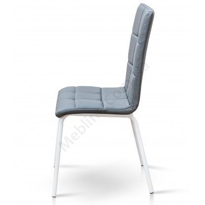М’який стілець на білих металевих ніжках з оббивкою зі штучної шкіри сірого кольору.