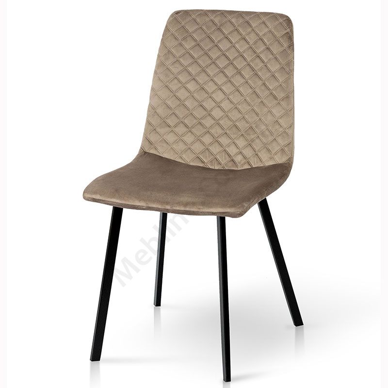 М’який стілець без підлокітників на металевих ніжках з велюровою оббивкою.