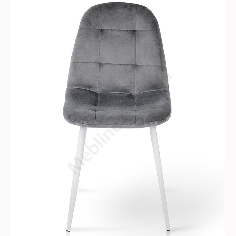 М’який стілець без підлокітників на металевих ніжках з оббивкою із велюру.