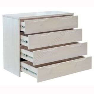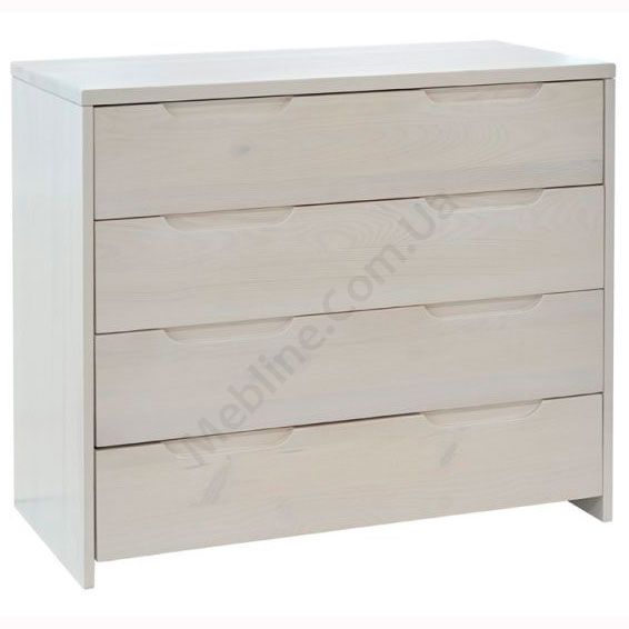 - Виконаний з ДСП та натурального дерева сосни у білому кольорі.