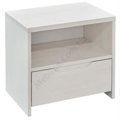 Приліжкова тумба з висувною шухлядою та відкритою поличкою.