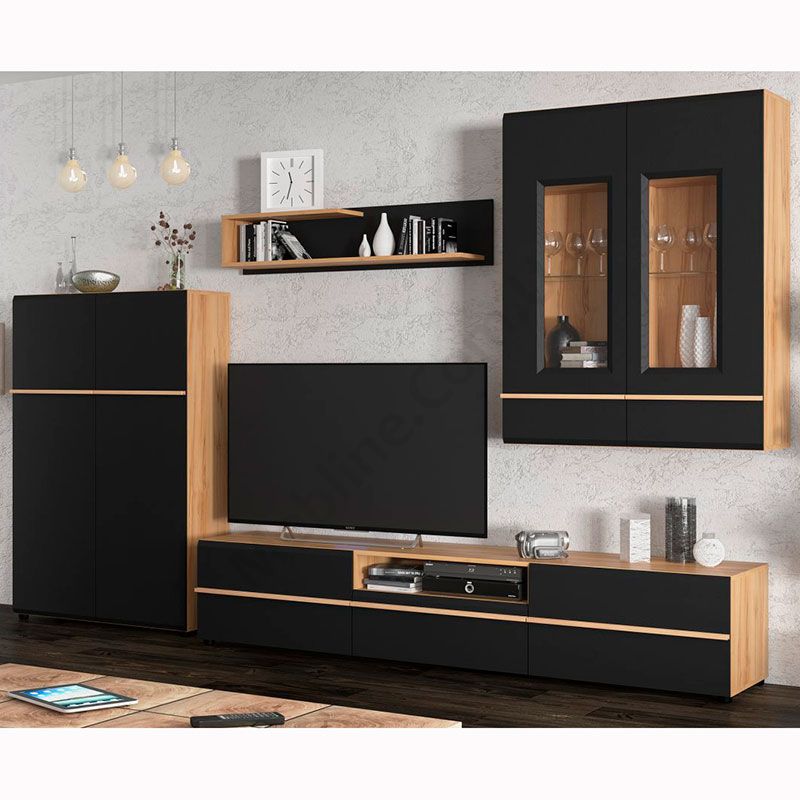 Стінка для вітальні з тумбою під телевізор, пеналом та вітриною.