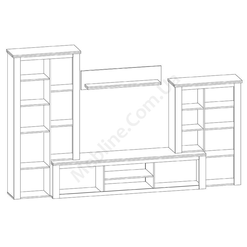 Стінка для вітальні з тумбою під телевізор, вітриною та полицею.