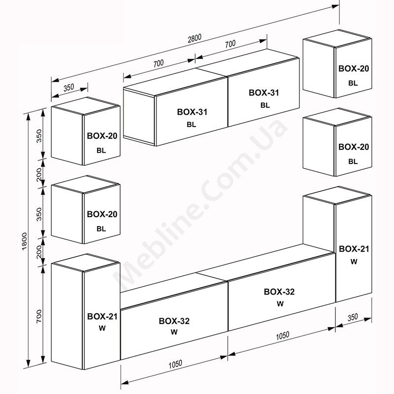 У магазині Ви можете купити Вітальний набір Box / Бокс F1 BX-F1-WB/BL за доступною ціною та доставкою по всій Україні. Обирайте Меблева стінка від фабрики MiroMark для облаштування вітальні в інтернет магазині меблів.