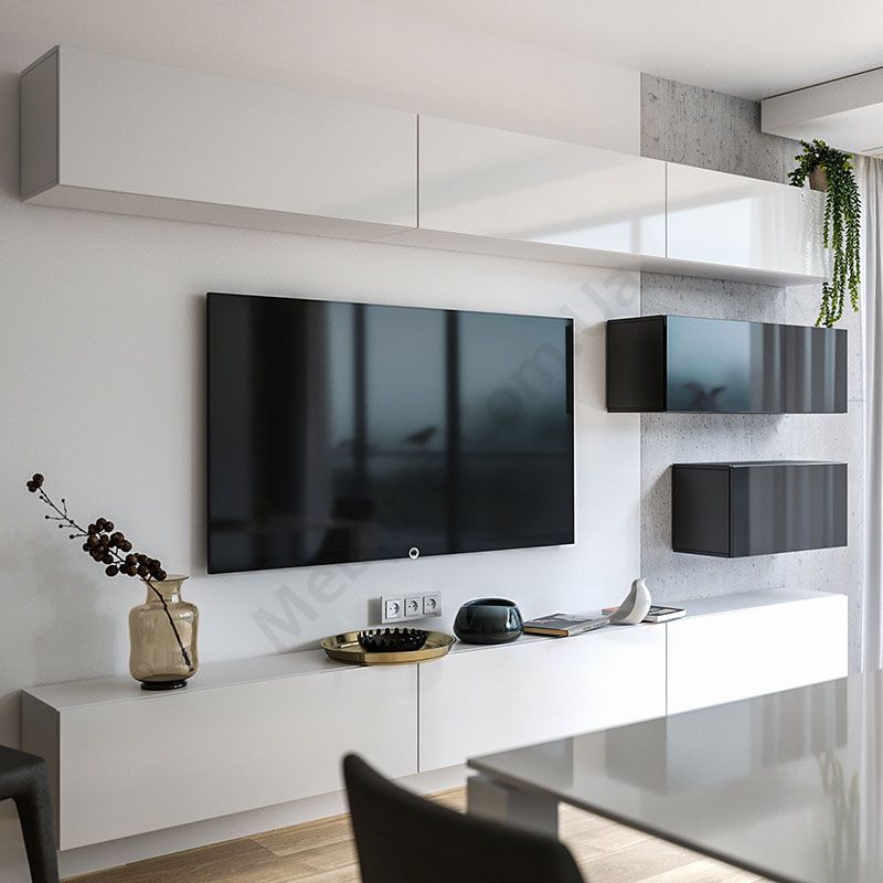 Підвісна стінка у вітальню із шафками та тумбами.