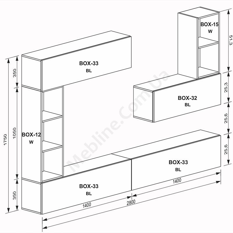 У магазині Ви можете купити Вітальний набір Box / Бокс V3 BX-V3-WB/BL за доступною ціною та доставкою по всій Україні. Обирайте Меблева стінка від фабрики MiroMark для облаштування вітальні в інтернет магазині меблів.