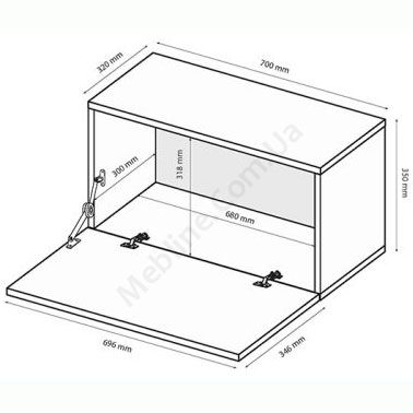 - Задня стінка — ХДФ 2,5 мм білого кольору.