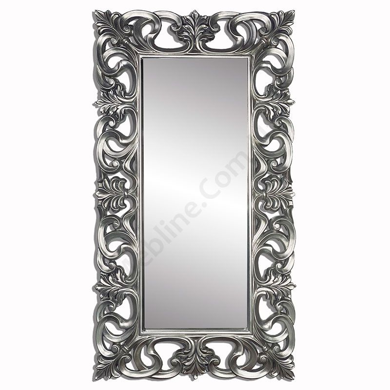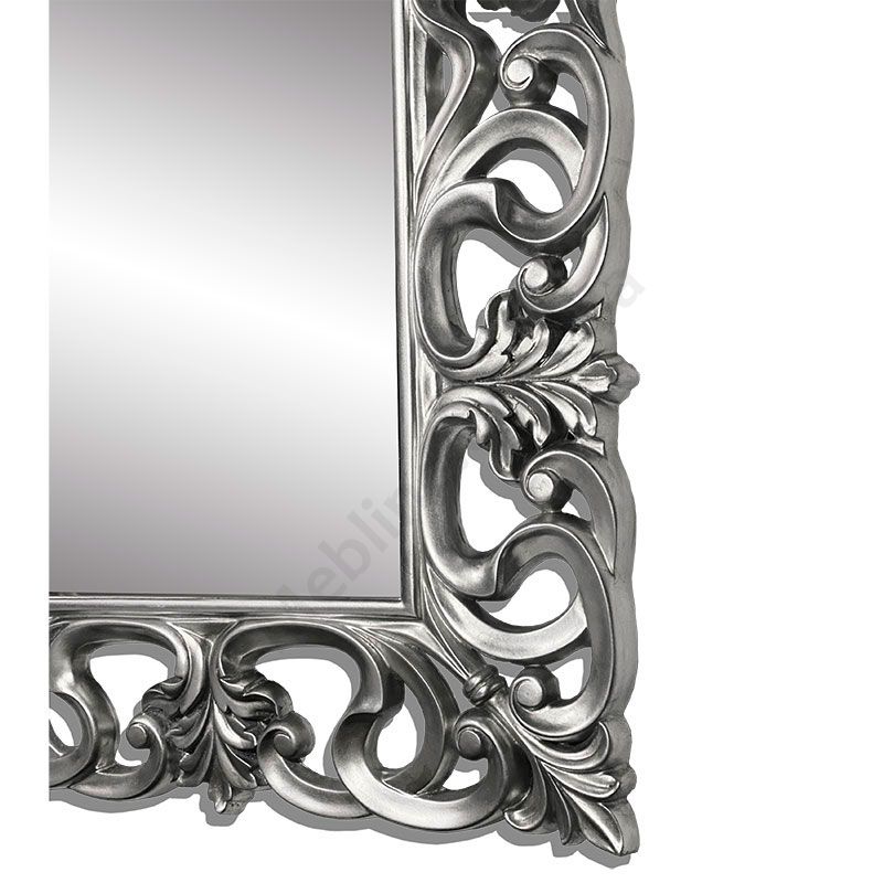 Дзеркало в гарній фігурній рамі срібного кольору.