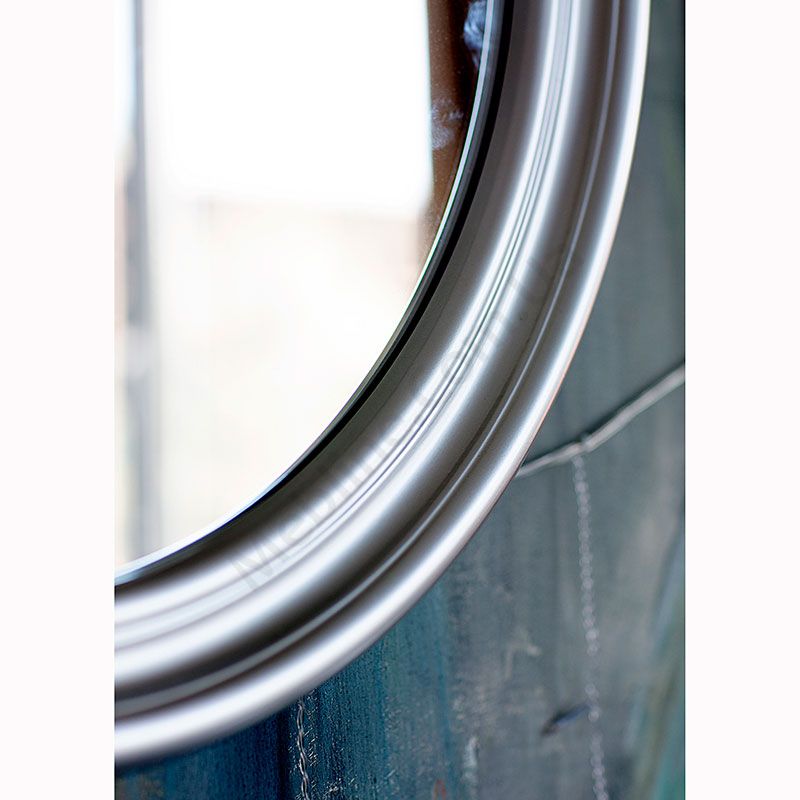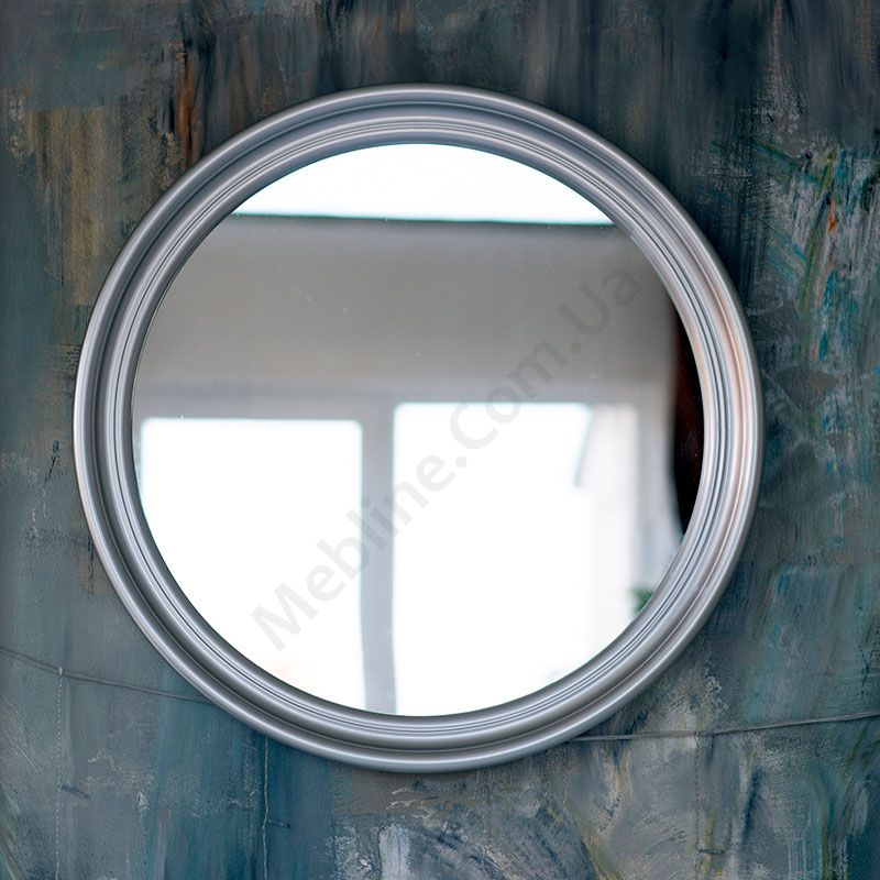 Універсальне дзеркало в круглій рамі срібного кольору.