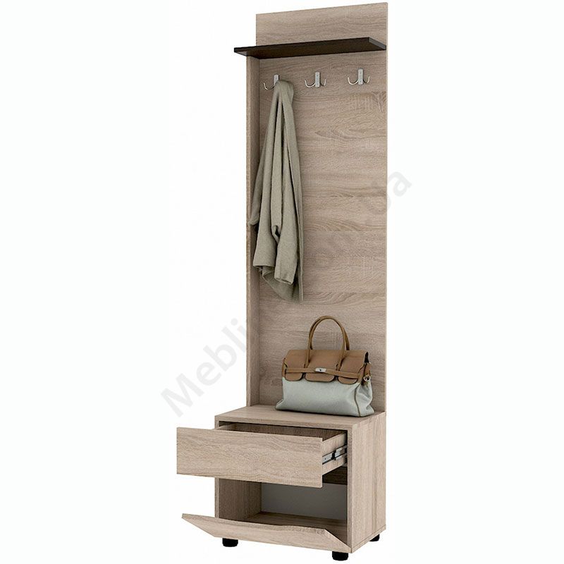 У магазині Ви можете купити Вішак Аякс 500 Дуб Сонома + Венге за доступною ціною та доставкою по всій Україні. Обирайте Вішак підлоговий від фабрики Мастер Форм для облаштування передпокою в інтернет магазині меблів.