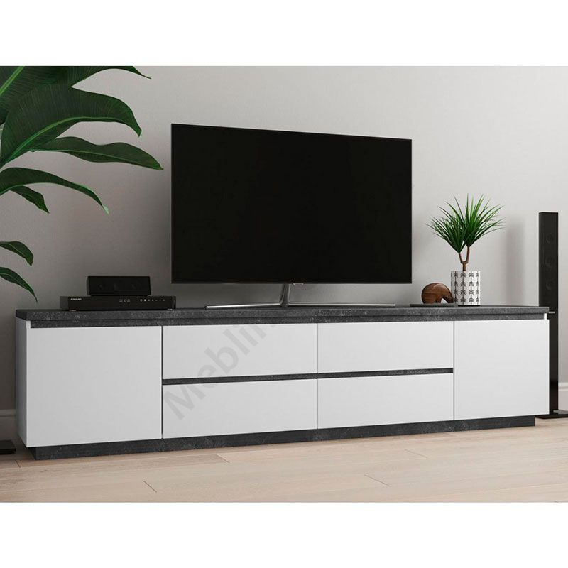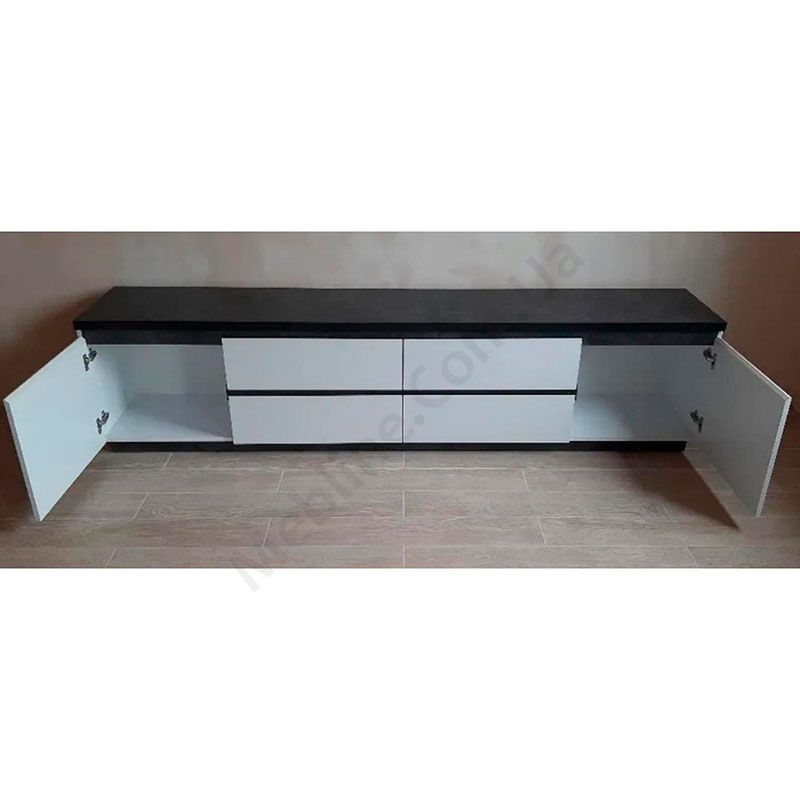 Тумба під телевізор з дверцятами та висувними шухлядами.