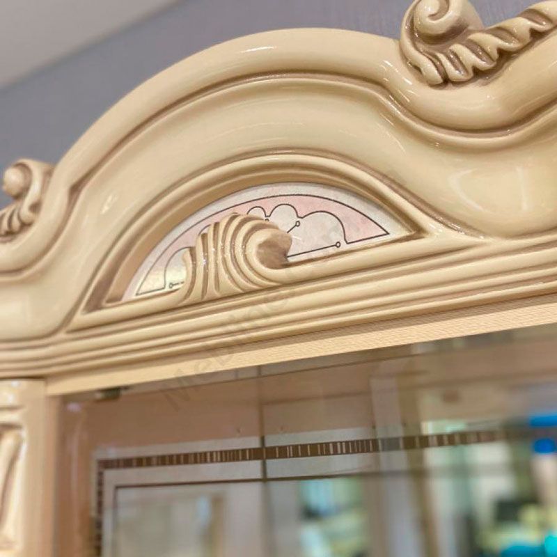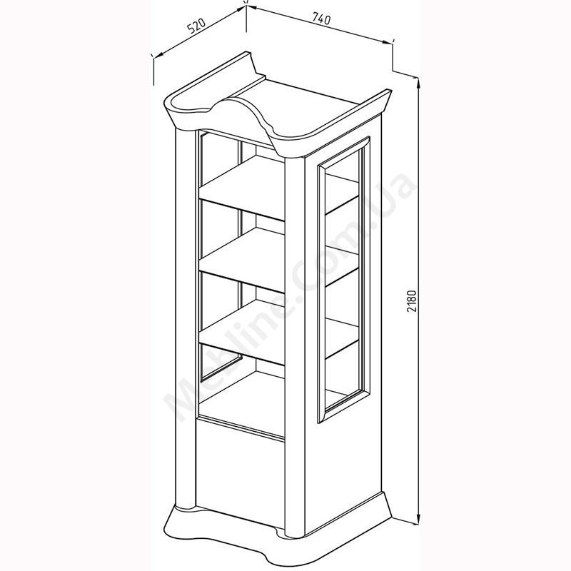 - Має скляні та глухі дверцята.
