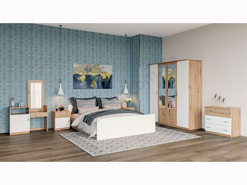 Ліжко двоспальне Кім 160х200 Дуб Артизан + Білий - Світ Меблів
