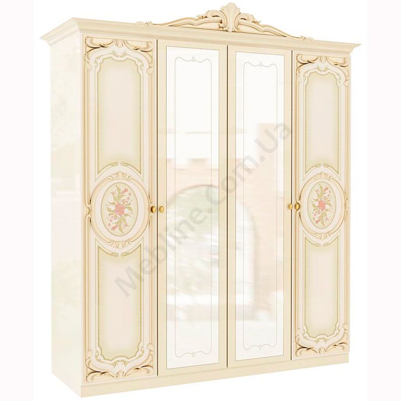 Чотиридверна шафа з дзеркалами, штангою та полицями.