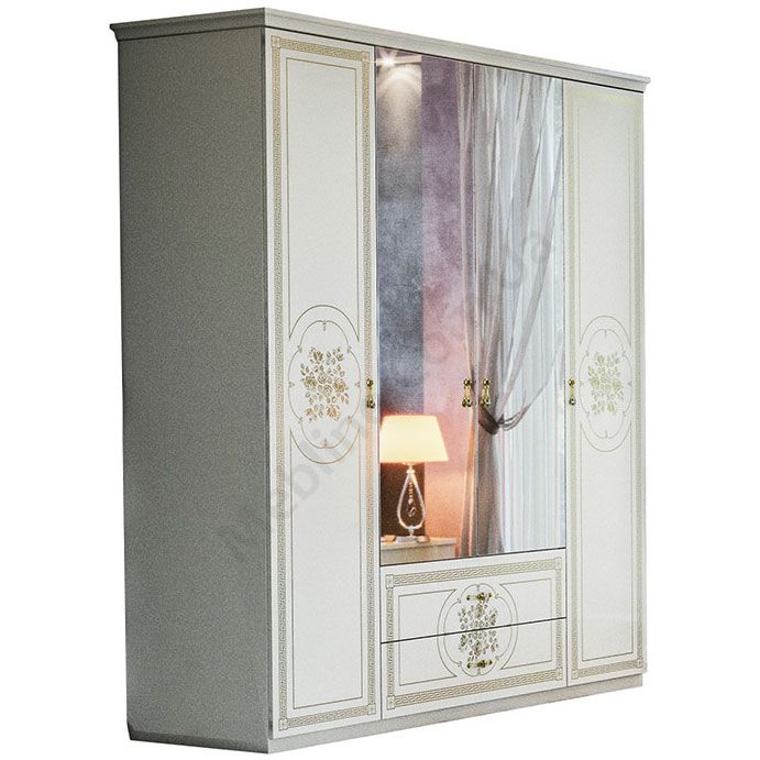 Чотиридверна шафа з дзеркалами та шухлядами.