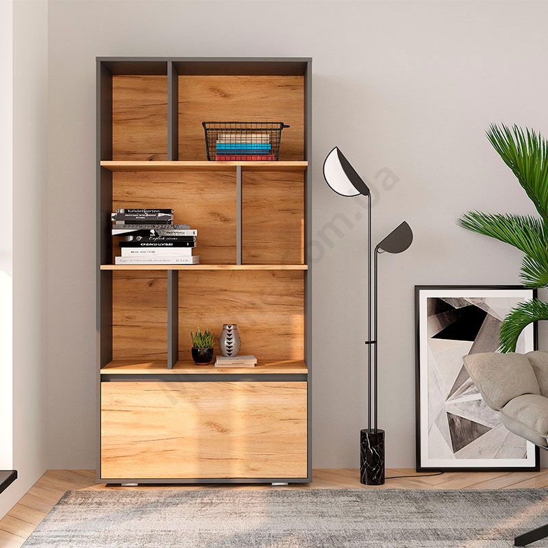 У магазині Ви можете купити Стелаж 1Ш Сірий Графіт + Дуб Крафт Золотий за доступною ціною та доставкою по всій Україні. Обирайте Стелаж від фабрики Фенікс для облаштування вітальні в інтернет магазині меблів.