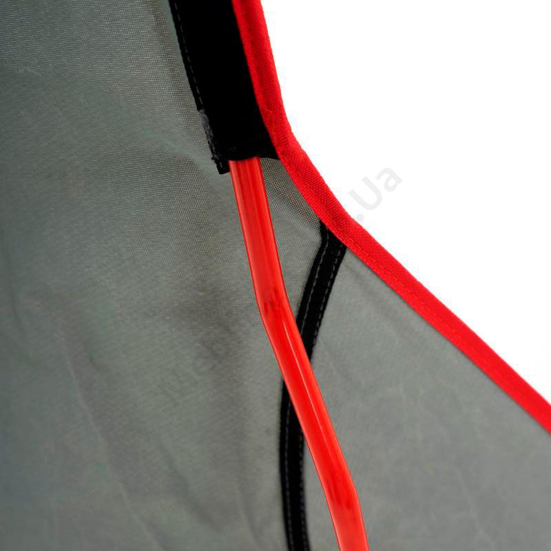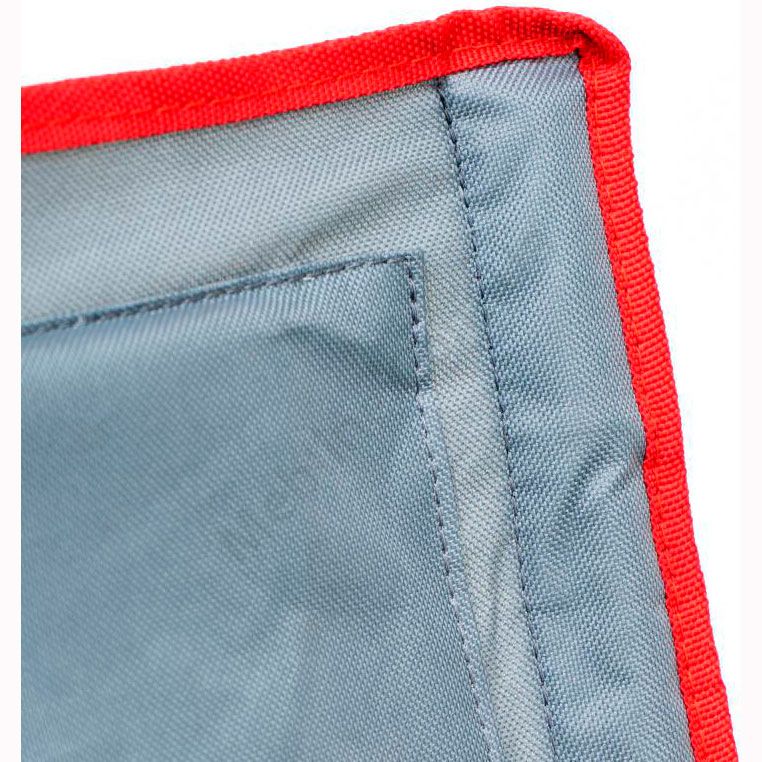 - Сидіння виконане з подвійної тканини Оксфорд 600D сірого кольору з червоним контуром.