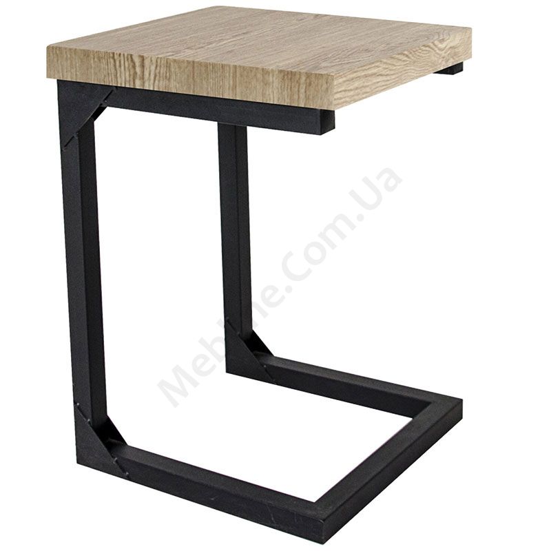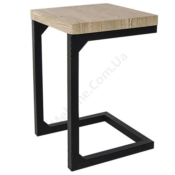 Квадратний табурет кольору дуба античного на металевому каркасі.