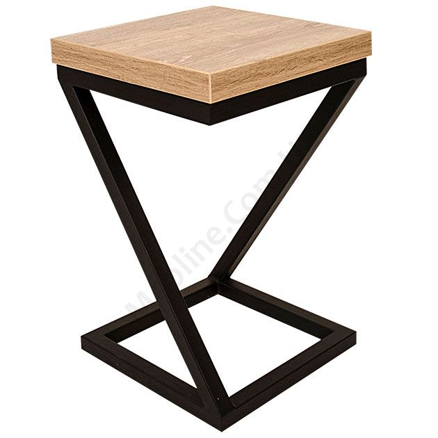 Квадратний табурет кольору дуба античного на металевому каркасі.