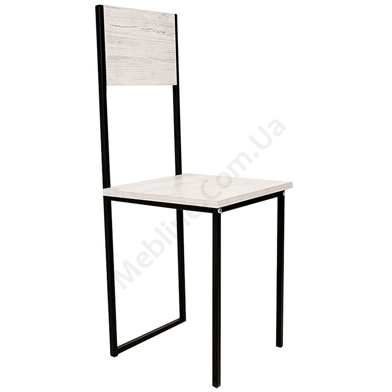Стілець кольору аляски на металевому каркасі.