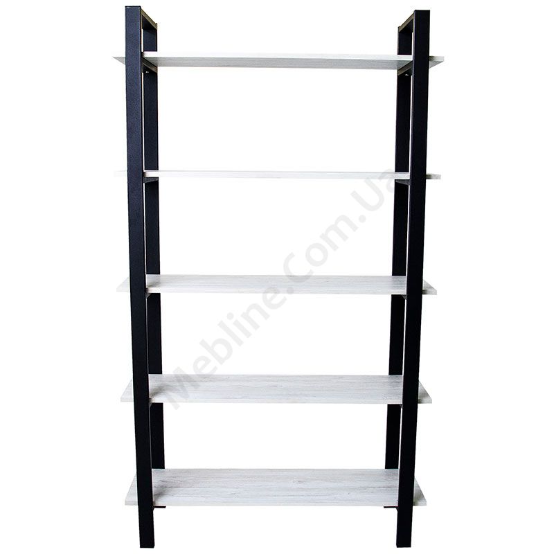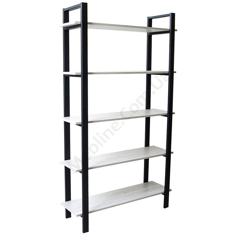 Стелаж з п’ятьма полицями на металевому каркасі.