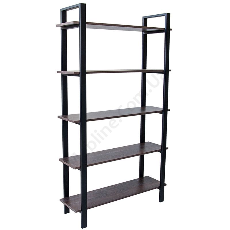 Стелаж з п’ятьма полицями на металевому каркасі.