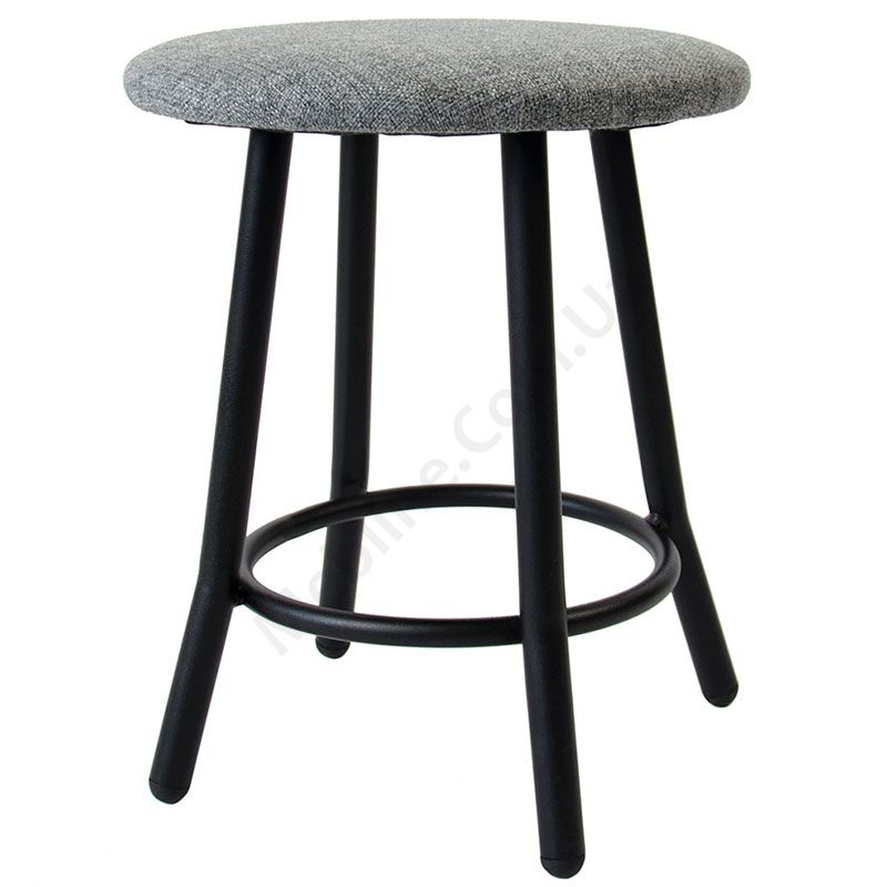 М’який табурет круглої форми на металевому каркасі.