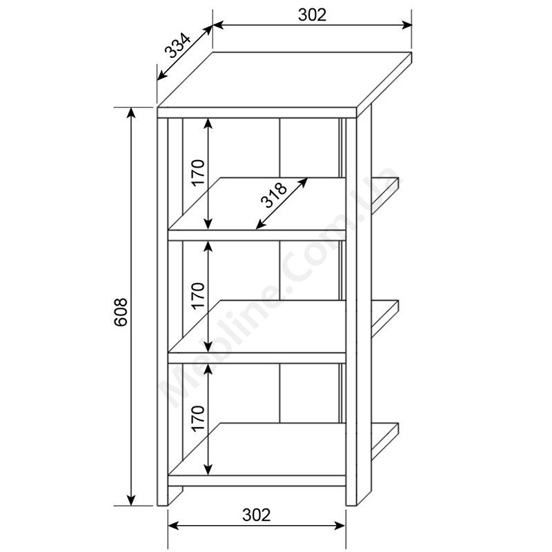 Виконаний з ламінованої ДСП Swiss Krono, завтовшки 16 мм.Екологічна безпека класу Е-1.Кромка — протиударна ПВХ, завтовшки 0,5 мм.Три відкриті полиці.