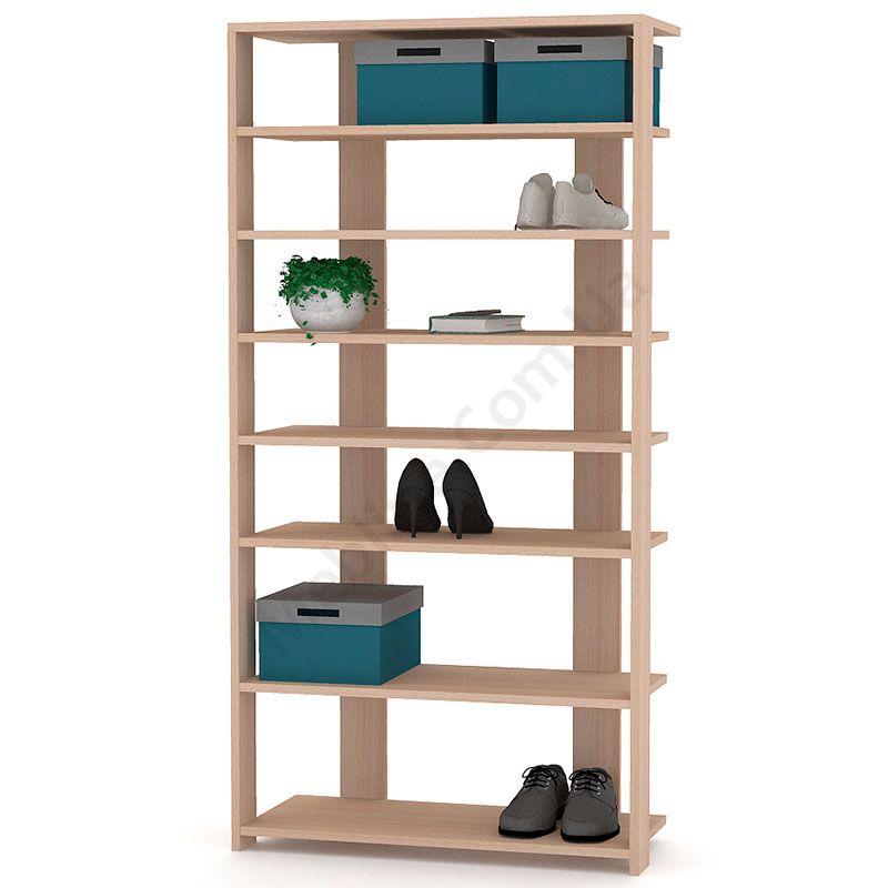 Виконаний з ламінованої ДСП Swiss Krono, завтовшки 16 мм.Екологічна безпека класу Е-1.Кромка — протиударна ПВХ, завтовшки 0,5 мм.Сім відкритих полиць.