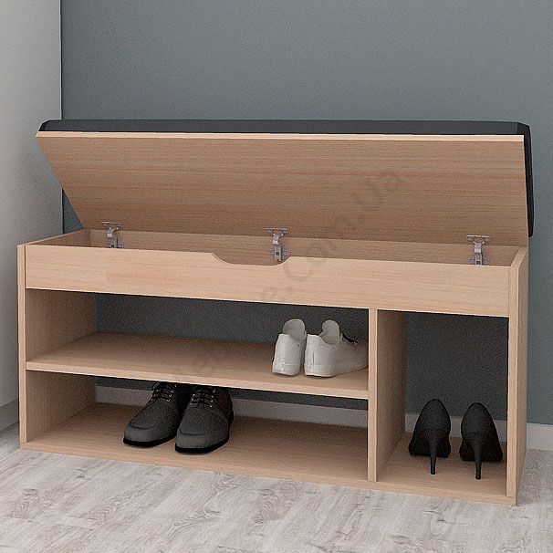 Тумба для взуття з відкритими полицями та м’яким сидінням.