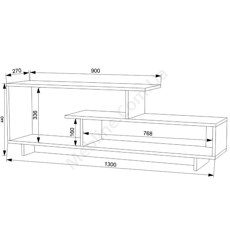 Виконано з ламінованої ДСП, завтовшки 16 мм.Кромка — ПВХ, завтовшки 0, 5 мм.Фурнітура — DC.Відкриті полиці для необхідних речей та декору.